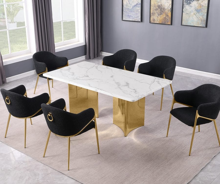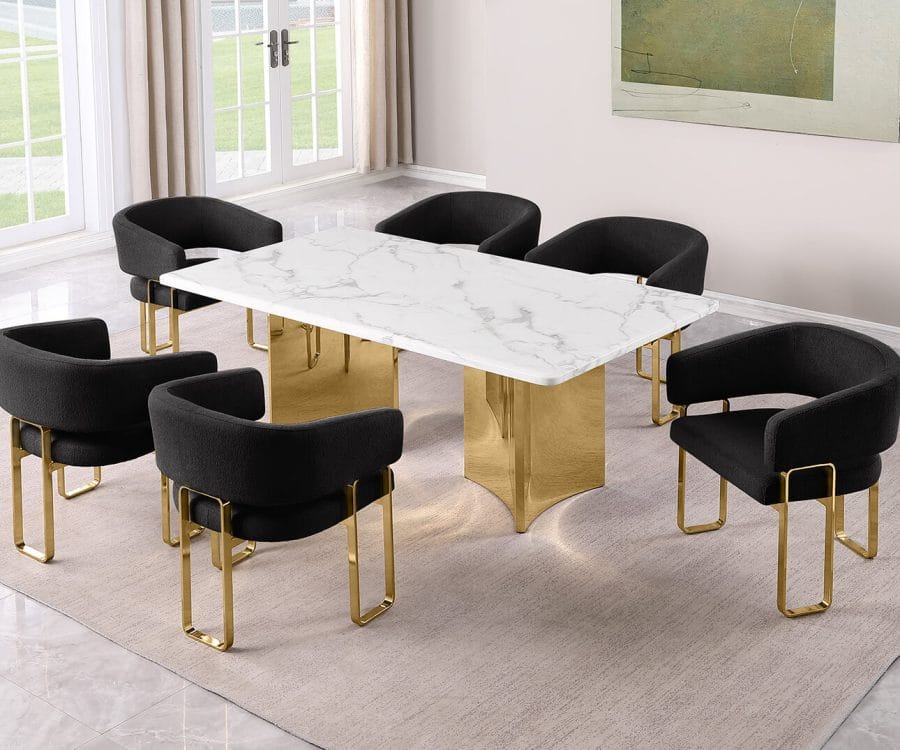 D460-1 + SC370-7: 7pc White Marble Dining Set (Silver & Gold)