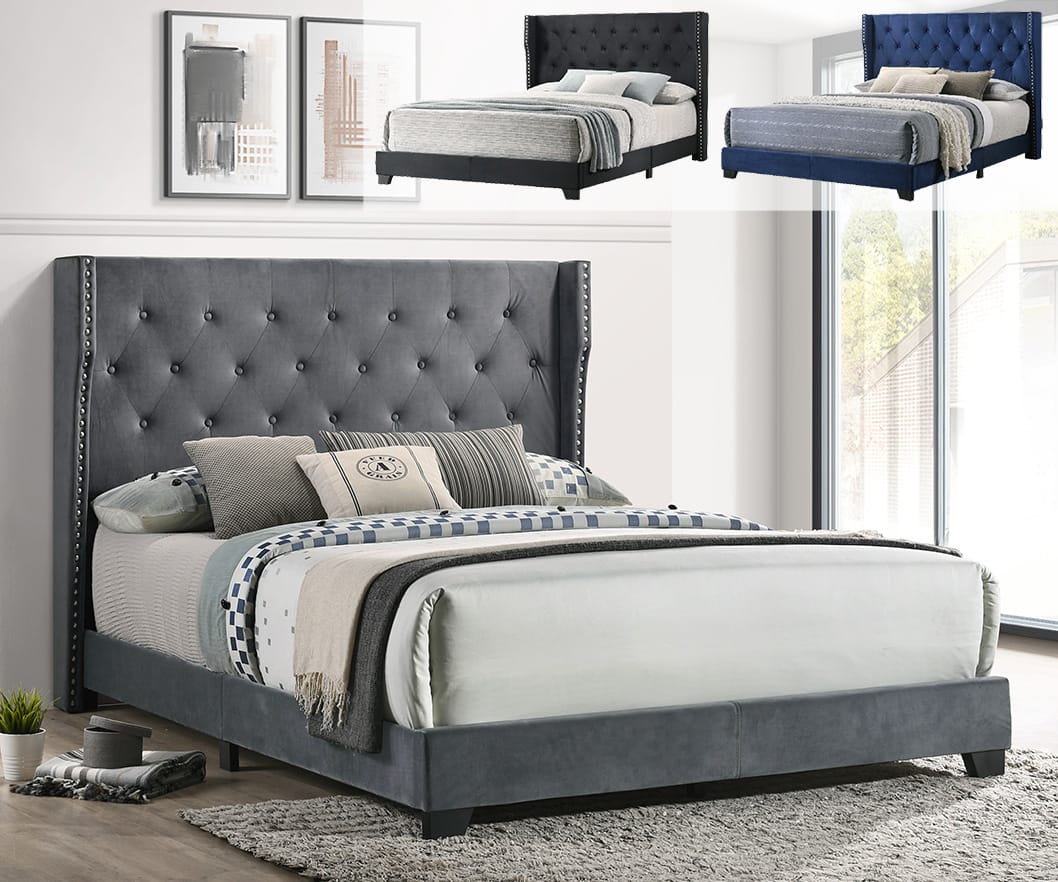 Partake in the upholstery tufted beds with studded side borders from Best Quality Furniture. The upholstered headboard is crafted from high quality materials for durability and support all around the bed. The bed is the perfect addition to any bedroom. Slats and hardware are included. Box spring required.