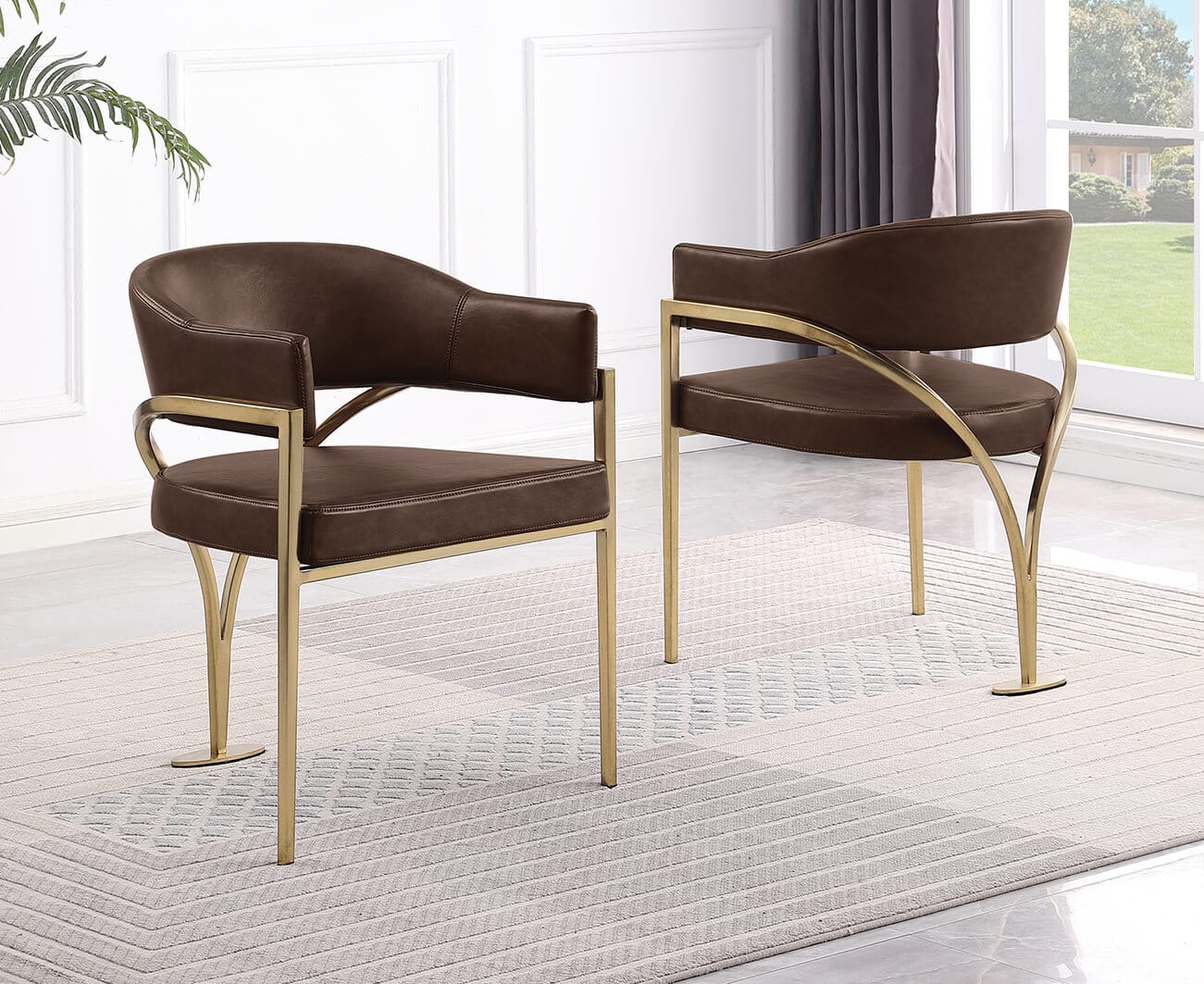 A modern 7 piece dining set with white marble table and leathaire (faux leather) fabric side chairs. The white marble is 38mm thick and is paired with sturdy stainless steel legs with a polished finish. The chairs are available in 3 colors to choose from and has a matte chrome finish to create a subtle contrast with the table.